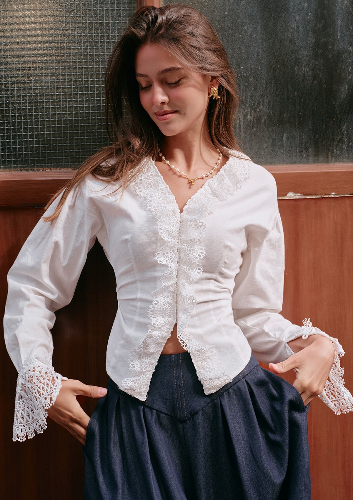 - Pair with denim for casual femininity