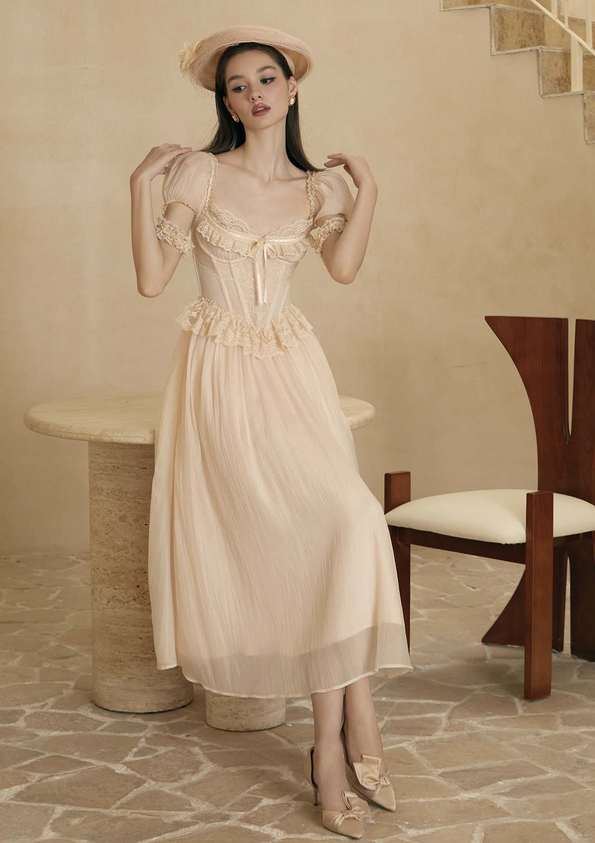 Princess cindy and her romantic manor.With its classic silhouette and exquisite details, this dress is a perfect choice for those seeking a touch of nostalgic elegance.