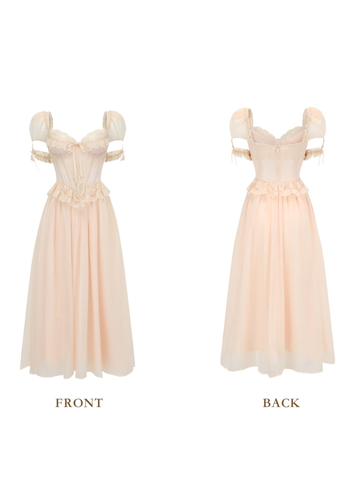 - Refined Details – Custom-dyed lace trims, ruched lace cuffs, and mesh-supported sleeves accentuate the silhouette.