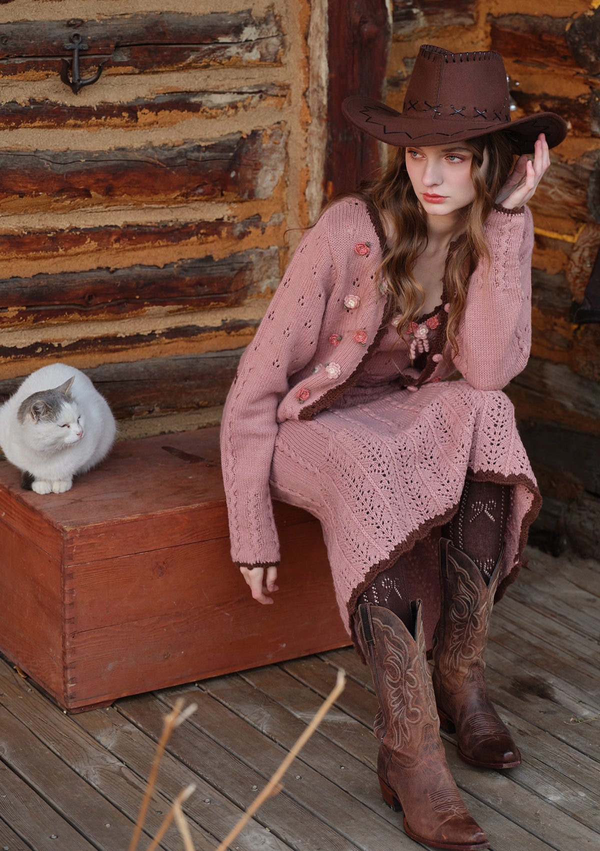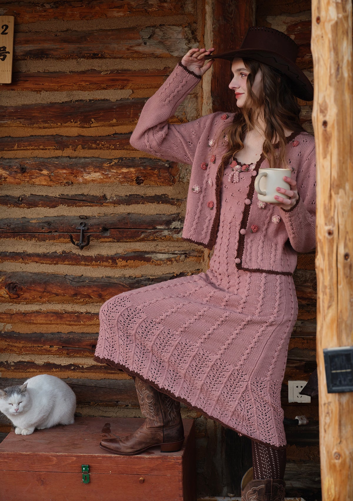 • Placket embellished with hand-crocheted flowers