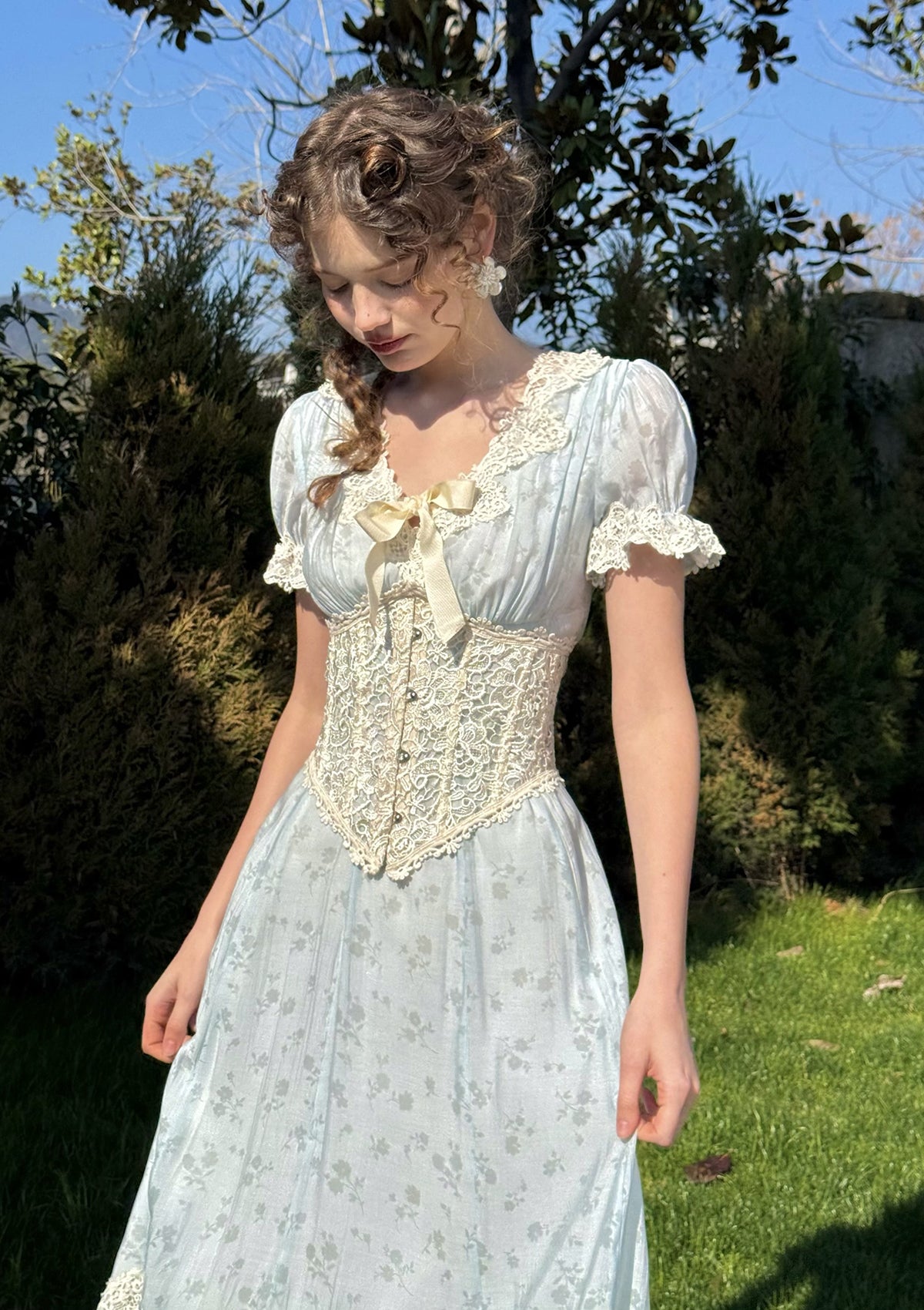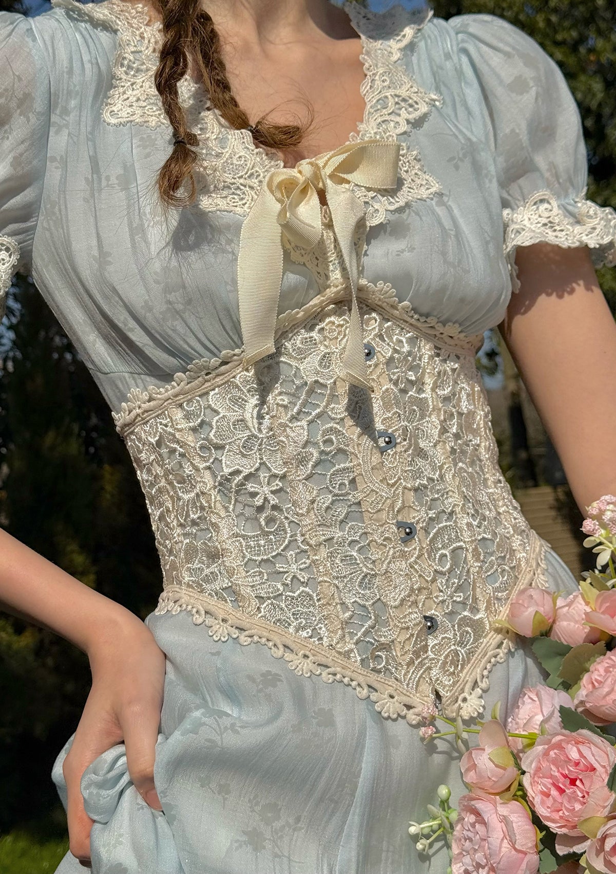 The Summer Wind Corset (Underbust) is crafted from light, airy polyester, designed to sculpt your silhouette without ever stealing your ease. Floral lace trims and delicate ties echo the wild beauty of open fields and warm winds.